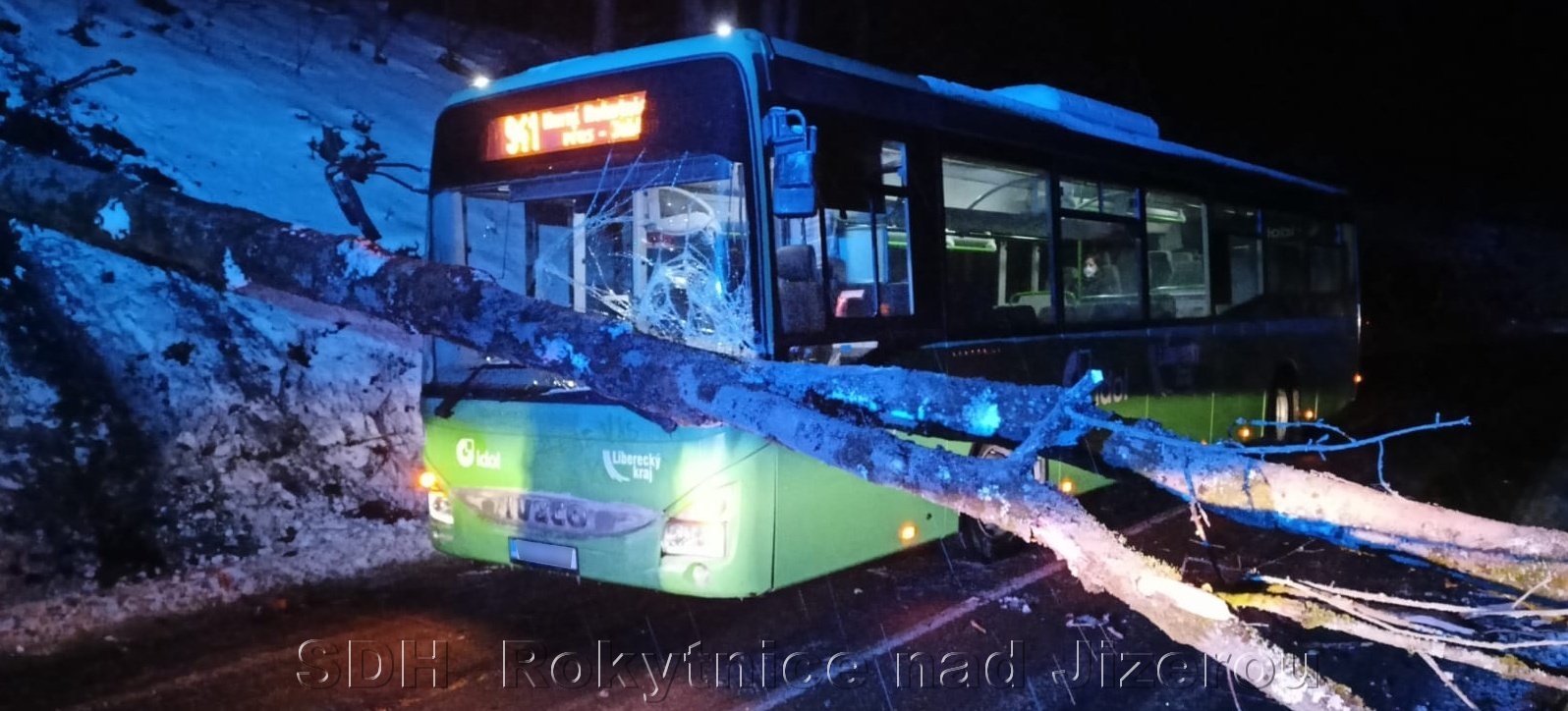 3/2022 28.1. v 5:21 hod. Dopravní nehoda, střet autobusu se stromem - Jablonec n/Jiz. Hradsko