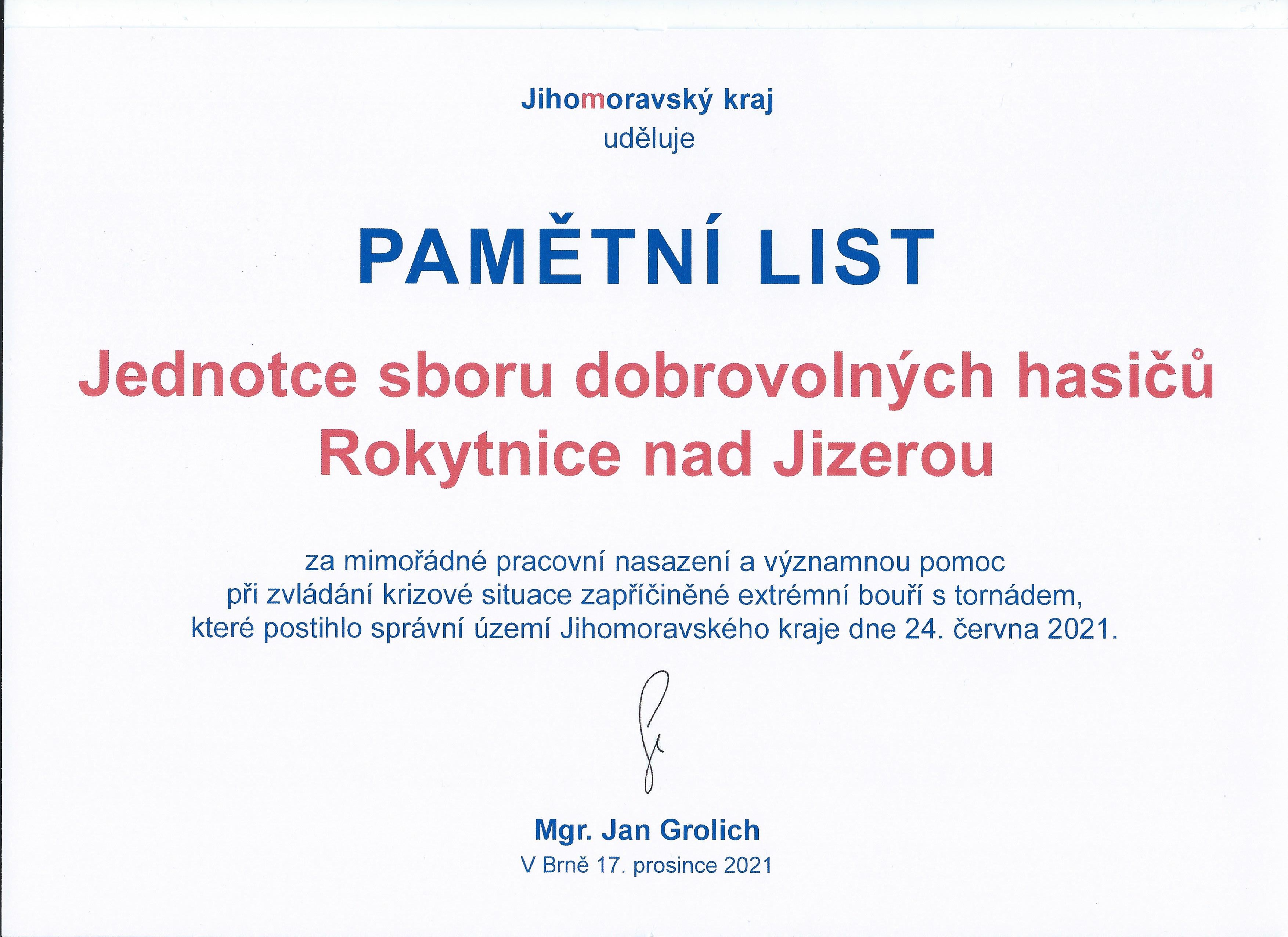 62/2021 21.10. v 16:36 hod. Odstranění nebezpečného stavu, naváhlé stromy nad komunikací - Dolní Rokytnice