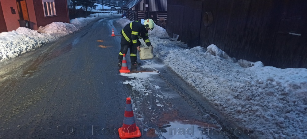 12/2021 17.2. 17:22 hod. Odstranění olejové skvrny (vyteklé provozní kapaliny) - Rokytno