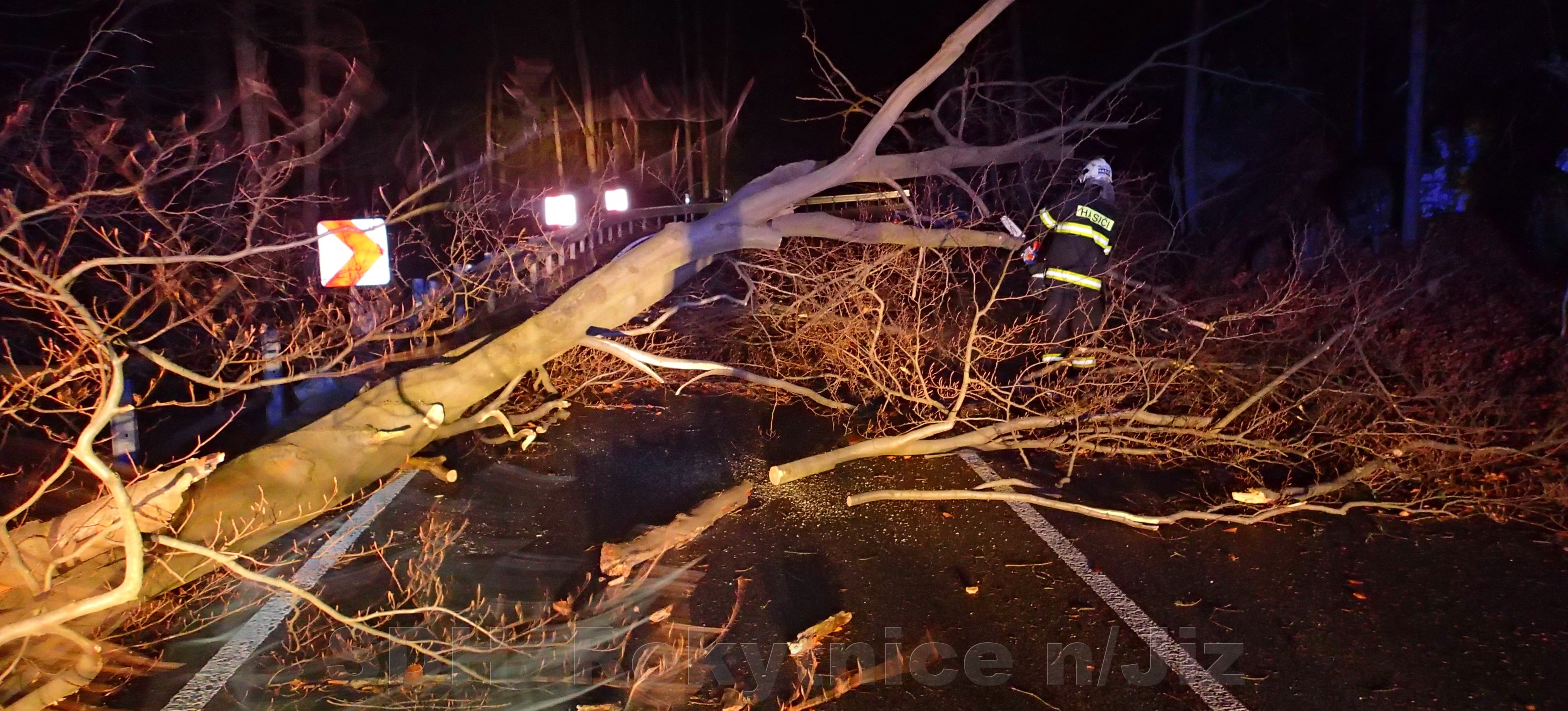 62/2018 30.10. ve 2:11 hod. Odstranění spadlých stromu z komunikace I/14, Vilémov - Harrachovské Mýto