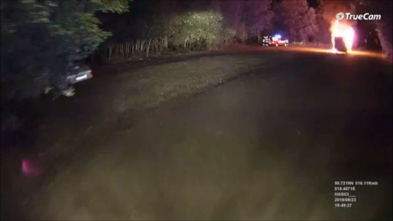 47/2018 19.8. V 1:57 hod. Požár osobního automobilu a travního porostu, Františkov.